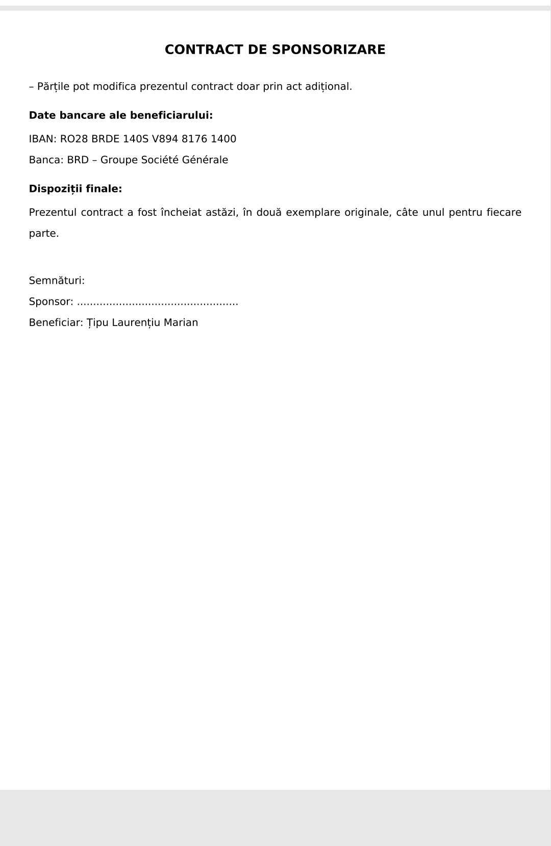 Trebuie încheiat un contract de sponsorizare intre societatea dvs. si ONG, in baza căruia banii vor putea fi depuși din impozitul pe profit. După folosirea sumei datorate veți primi un raport despre cum au fost cheltuiți banii depuși de dumneavoastră si ce impact au avut in viata celor care au avut nevoie de noi.